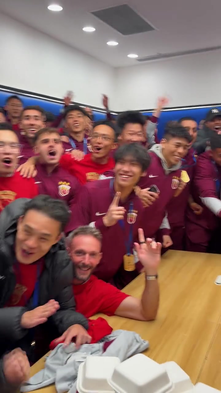 11月22日讯 海港记者刘闻超发布视频,在夺得2025赛季中超冠军后,上海海港全队在更衣室欢庆夺冠。 赛后的海港更衣室里敌视横暴,全员歌咏庆祝夺冠,主帅穆斯卡特手持中超火神杯站在中央,有队员和教授平直喜跃地提起瓶子泼洒饮料。 |