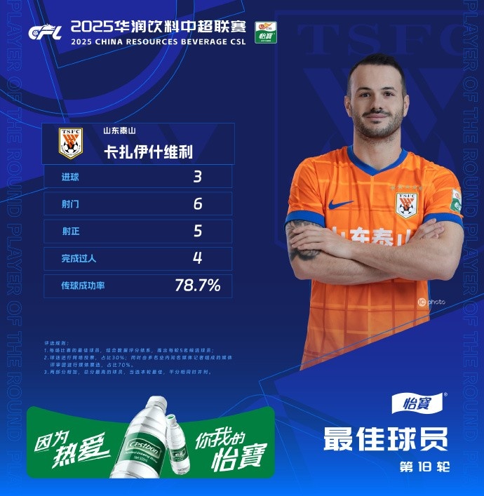 7月29日讯 中超官方音书,山东泰山外助卡扎伊什维利当选为第18轮最好球员。 在第18轮中超山东泰山迎战梅州客家的比赛中,卡扎伊什维利演出帽子戏法,最终匡助山东泰山3比0取胜。 在本轮官方最好球员评比中,卡扎伊什维利在媒体评审门径获取15张第一顺位选票,以65分排行第一;在球迷投票门径,卡扎伊什维利获取24分排行第二,最终他以总分89分当选为第18轮最好球员。 |