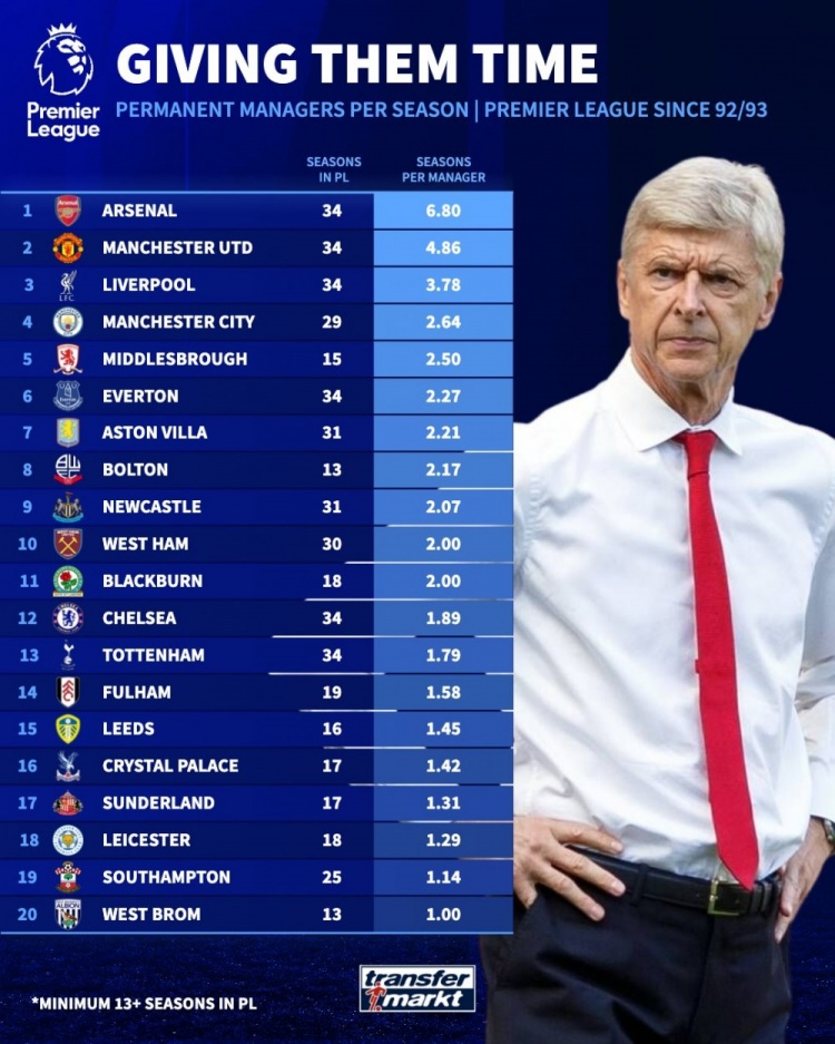 10月22日讯 《转会市集》统计了英超各队的历任认真主解说平均捏教年限情况,阿森纳无悬念居首。 德转列英超各队认真主帅平均捏教时长排名榜(球队至少在英超成立13个赛季) 1.阿森纳,34个赛季,6.80年 2.曼联,34个赛季,4.86年 3.利物浦,34个赛季,3.78年 4.曼城,29个赛季,2.64年 5.米德尔斯堡,15个赛季,2.50年 6.埃弗顿,34个赛季,2.27年 7.阿斯顿维拉,31个赛季,2.21年 8.博尔顿,13个赛季,2.17年 9.纽卡斯尔联,31个赛季,2.07年 10.西汉姆联,30个赛季,2.00年 11.布莱克本,18个赛季,2.00年 12.切尔西,34个赛季,1.89年 13.托特纳姆热刺,34个赛季,1.79年 14.富勒姆,19个赛季,1.58年 15.利兹联,16个赛季,1.45年 16.水晶宫,17个赛季,1.42年 17.桑德兰,17个赛季,1.31年 18.莱斯特城,18个赛季,1.29年 19.南安普顿,25个赛季,1.14年 20.西布朗维奇,13个赛季,1.00年 |