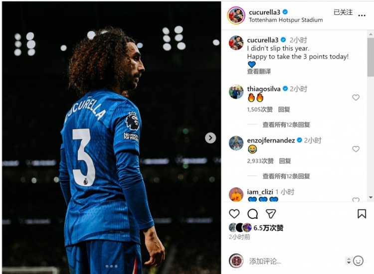 11月2日讯 英超第10轮比赛,库库雷利亚踢满全场,匡助切尔西客场1-0打败热刺。 库库雷利亚社媒晒出比赛相片,配文玩弄:“本年我没滑倒,很欣喜今天全取三分。” 上赛季切尔西客场对阵热刺的英超比赛,库库雷利亚两次滑倒导致丢球,他换鞋后送出助攻,匡助切尔西4-3逆转取胜。 |