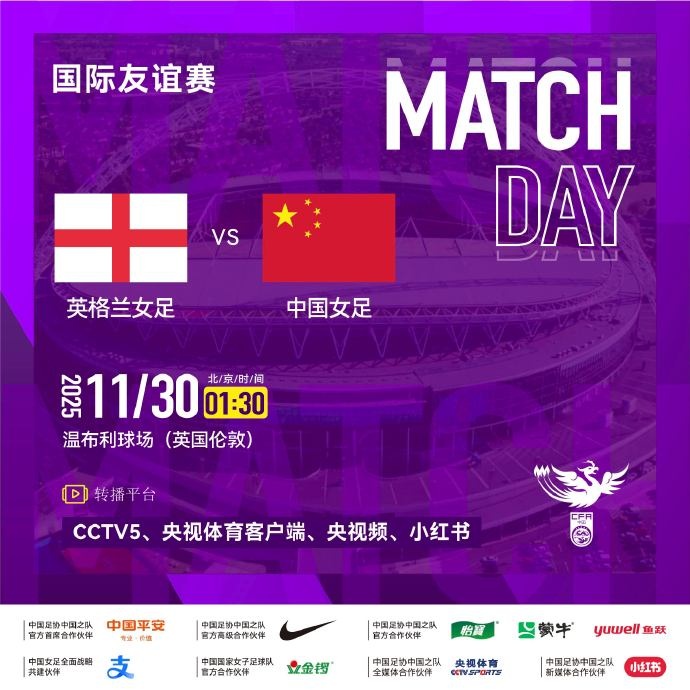 对决温布利! 外洋足球友谊赛 ⚽ 英格兰女足 VS 中国女足 ⏰ 北京本事2025年11月30日凌晨01:30 🏟️ 温布利球场 锁定以下转播平台,全部为女足小姐们加油!