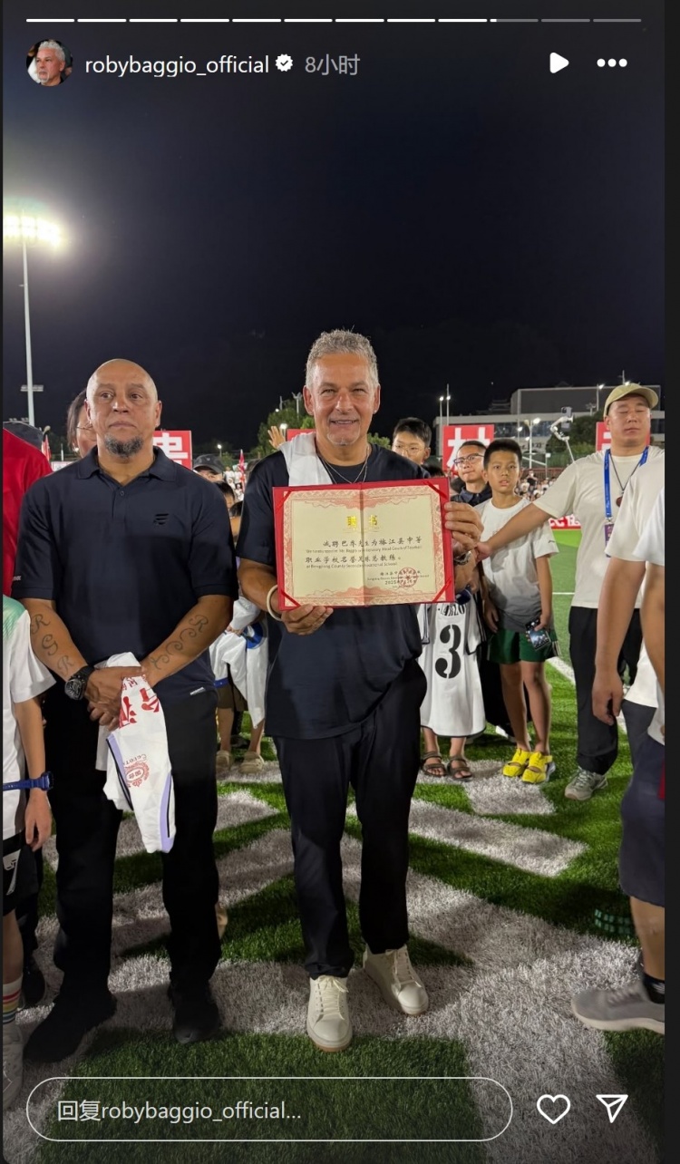 7月27日讯 巴乔更新社媒动态,晒出与罗伯特-卡洛斯出席村超举止的像片。 巴乔与卡洛斯现身贵州榕江村超现场,出席村超揭幕战,巴乔社媒晒出与卡洛斯进入举止的像片。