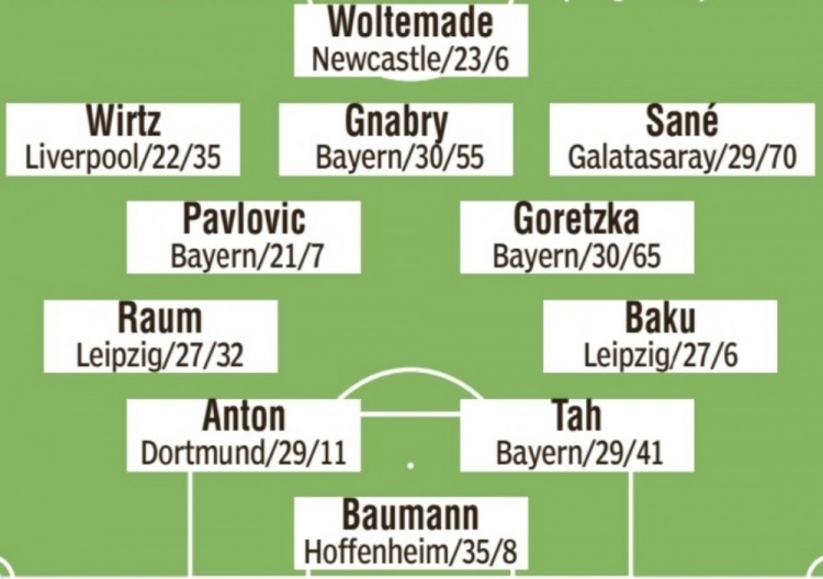 11月14日讯 北京时辰翌日凌晨,德国将在欧洲世初赛中客场对阵卢森堡。《图片报》权衡了德国队的首发气势。 图片报权衡德国队首发 门将:鲍曼(霍芬海姆) 后卫:劳姆(莱比锡)、安东(多特)、若纳坦·塔(拜仁)、巴库(莱比锡) 中场:帕夫洛维奇(拜仁)、格雷茨卡(拜仁)、维尔茨(利物浦)、格纳布里(拜仁)、萨内(加拉塔萨雷) 前卫:沃尔特马德(纽卡) |