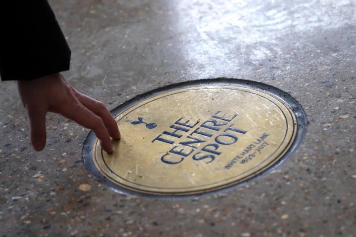 在内维尔参不雅的一初始,列维自爱地展示了一处与热刺历史的相关。列维说:“你知说念这个地板吗?这是老球场的。”在内维尔咋舌“哇哦”时,列维连接说:“沿途被碾碎了。咱们念念保留与老白鹿巷和历史的相关。这是字面道理上的碾碎混凝土,之后再进行平整。” 在南看台大厅内,地板上还有一块铭牌,标记取老白鹿巷球场中心点的位置。