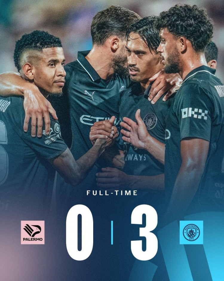 直播吧8月10日讯 足球友谊赛,巴勒莫对阵曼城,比赛在伦佐巴贝拉球场进行。上半场,哈兰德先拔头筹。易边再战,两边大面积换东说念主,赖因德斯双响。最终曼城3-0巴勒莫。
