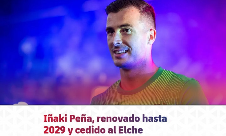 08月27日讯 官方音信,巴萨与佩尼亚续约至2029年,并租出至埃尔切一年。 公告 巴塞罗那与一线队球员佩尼亚已就续约收场左券,新合同有用期至2029年6月30日。 与此同期,巴塞罗那与埃尔切也已收场左券,这位门将将租出加盟埃尔切,租期一年。