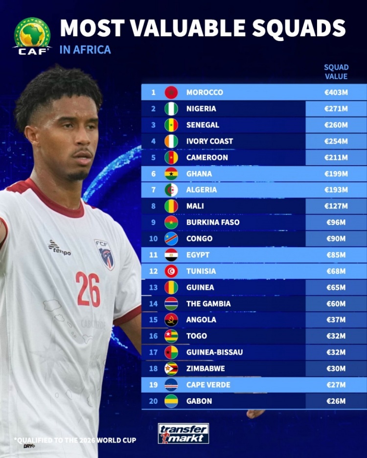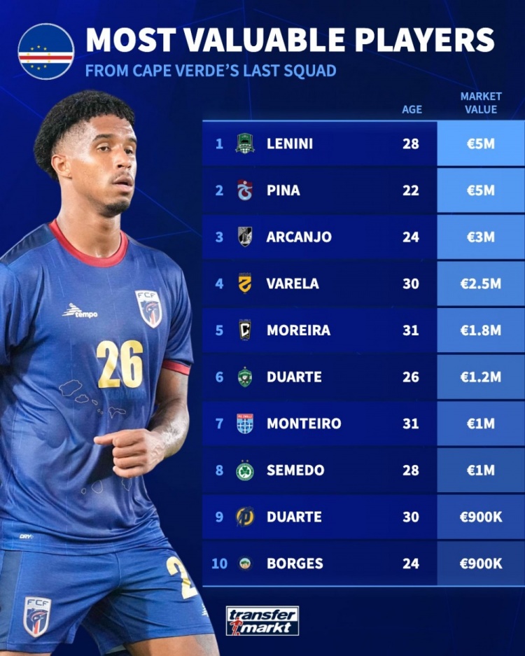 10月14日讯 世初赛非洲区比赛,佛得角3-0打败斯威士兰,队史初度晋级天下杯。 德国转会市集列出了佛得角辞世初赛中的数据,佛得角战绩6胜2平1负,场均赢得2.22分,打进13球丢8球。 佛得角声势总身价2700万欧元,非洲球队之中仅排在第19位,而首位摩洛哥总身价高达4.03亿欧元。佛得角身价最高的球员为莱尼尼、皮纳,两东说念主德回身价均为500万欧元,仅8名球员身价达到100万欧或以上。 |