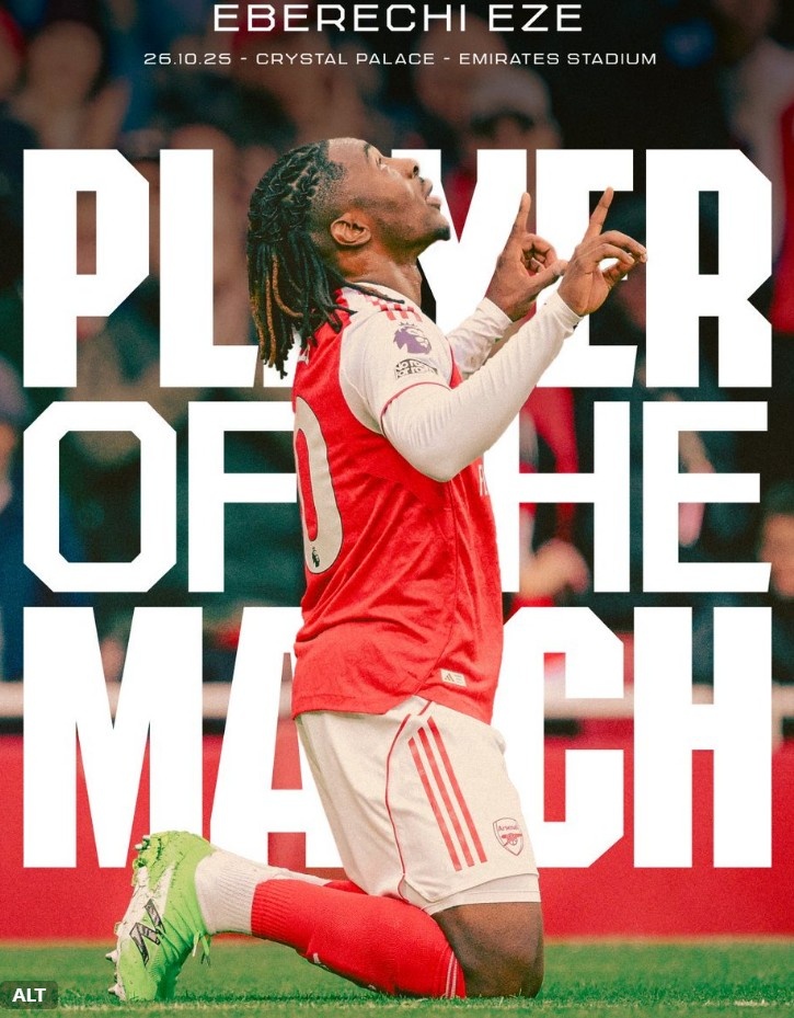 10月27日讯 在本轮英超,阿森纳1-0打败水晶宫。 本场比赛埃泽濒临旧主破门打进制胜球,赛后他也当选阿森纳官方评比出的本场队内最好球员。 |