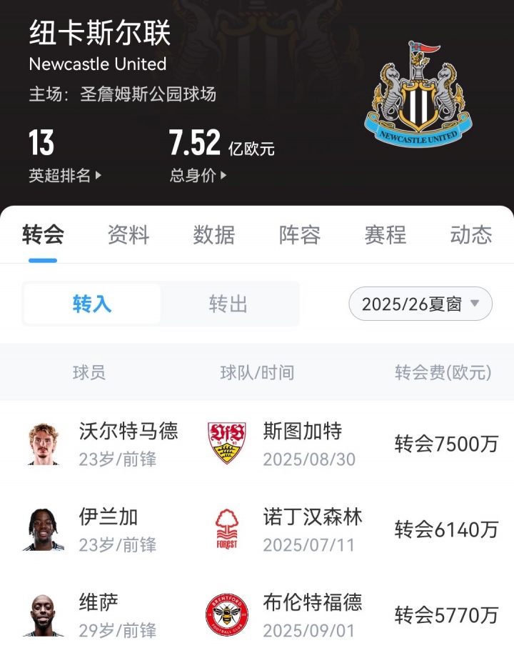 11月03日讯 昨晚英超第10轮,纽卡1-3不敌身陷左迁区的西汉姆联,现在在英超积分榜上仅排行第13位。 本年夏窗的纽卡在转会阛阓上也掀翻了一阵浪潮,他们一共浪费1.94亿欧在锋线上引进了沃尔特马德、伊兰加和维萨3名球员,并在转会窗临了本事将伊萨克以1.45亿欧的价钱卖给利物浦。 新赛季运行,来自德甲的沃尔特马德发挥可以,代表纽卡出战12场比赛孝顺6球。但另外两东说念主的发挥则难以让东说念主欢欣,维萨因膝要害伤病于今仍未复出;伊兰加英超10轮比赛,仍然0球0助,仅在欧冠中送出一次助攻。 而纽卡的举座战绩也不算太好,英超3胜3平4负排行第13位。