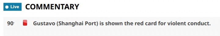 09月30日讯 亚冠精英联赛东亚区第2轮,广岛三箭vs上海海港第90分钟,海港时尚古斯塔沃拼抢中犯规,主裁判果决直红将其罚下,VAR核实后督察了原判。 亚足联官网对这次事件的描摹为:古斯塔沃(上海海港)因暴力行径被红牌罚下。 |