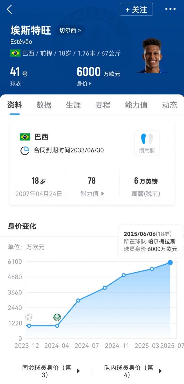 10月11日讯 昨晚进行的友谊赛中,巴西客场5-0横扫韩国,18岁的小将埃斯特旺斩获2个进球。 第13分钟,埃斯特旺禁区右侧插上,接吉马良斯的手术刀直塞推射破门,突破僵局。 第47分钟,埃斯特旺明锐抢断金玟哉,随后左脚兜射破门,为巴西队扩大比分。 赛后,国度队队友卡塞米罗对埃斯特旺评价说念:“他照旧展现出了成为伟大球员的潜质,在帕尔梅拉斯踢球时就照旧暴露头角,但咱们要纪律渐进,幸免拔苗滋长。” 夏窗来到切尔西的埃斯特旺充分展现了我方的天禀与后劲。上周进行的英超第7轮,他在终末时分打进个东说念主英超首球,匡助切尔西主场绝杀利物浦。 在埃斯特旺16岁时,德转为其设定的起步身价就达到了1000万欧;2年间他的身价照旧全部上升来到了6000万欧,在2007年出身的同龄东说念主中仅次于亚马尔和库巴西。 9月,埃斯特旺还打进了我方在国度队的首球。要是能络续这么的状况,不休卓越,他的改日完全值得球迷期待。 |
