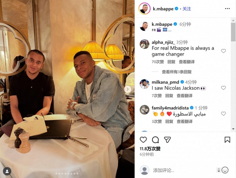 10月15日讯 由于在对阵阿塞拜疆的比赛中脚踝伤情加剧,姆巴佩莫得出战对阵冰岛的比赛。在他缺阵的情况下,法国最终和敌手战平。不外,这也让法国前卫取得了贫乏的休息时间。 在酬酢媒体上,姆巴佩晒出了我方和弟弟伊桑在全部的像片,独处失业装的法国前卫靠近镜头充满自信。接下来,姆巴佩需要在皇马宽饶对阵尤文以及巴萨的焦点战。 |